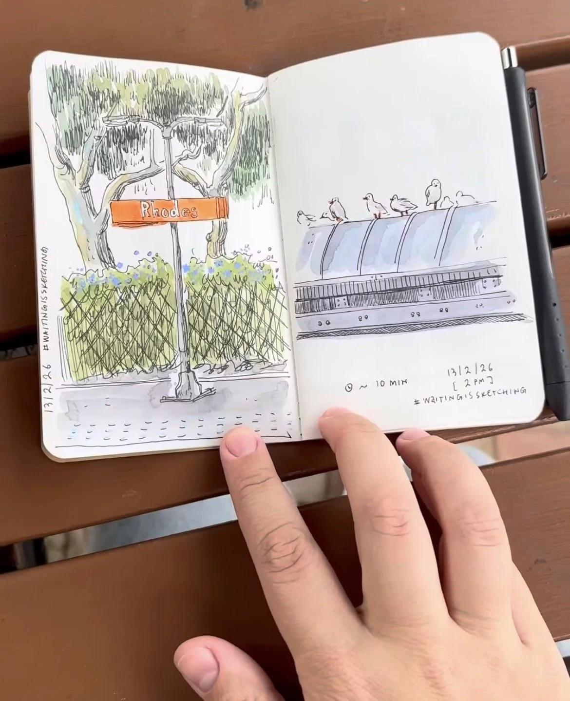 “The paper is lovely to draw on: great for pencil, gel pens, fine liners and even light washes of watercolour. The size is just right! Easy to slip into a small bag, a jeans pocket and to reach for it while I’m waiting😄”