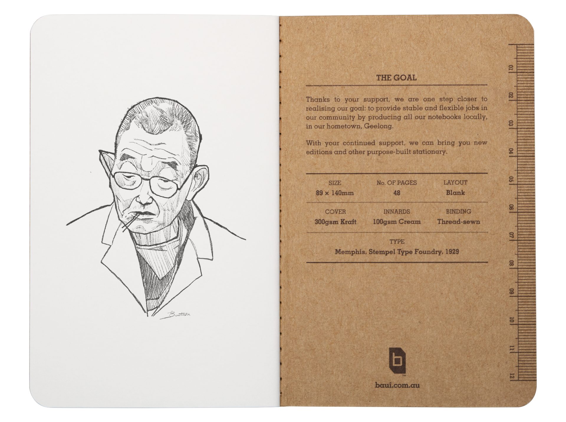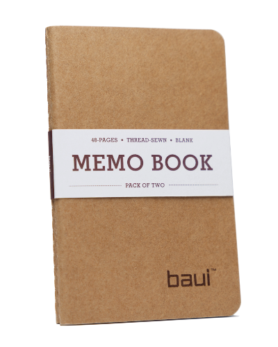 A pocket memo book by Baui. Small enough to fit in a pocket, strong enough to last. With a durable classic kraft cover and premium paper stock, the Memo Book is suitable for daily note taking, shopping lists, journalling, art and much more. Our focus on quality is shown by the smooth finish and delightful experience for all, even our fountain pen enthusiast friends.